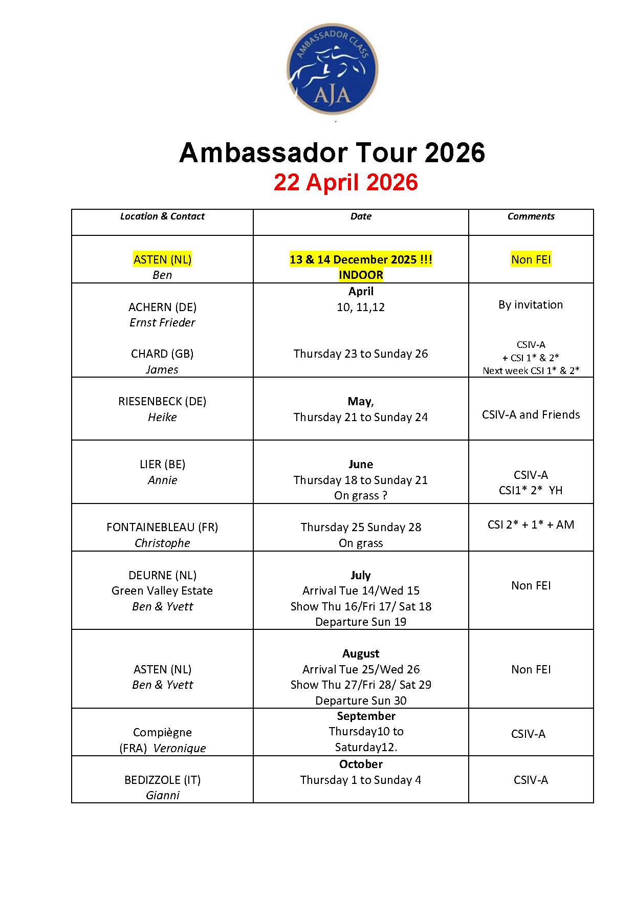 Kalender 2026 Ausgabe vom 22.04.2026